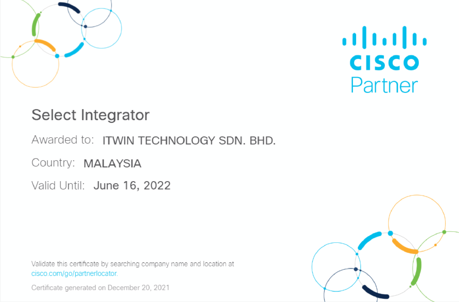Cisco Select Integrator Certificate - ITWin Technology Sdn Bhd