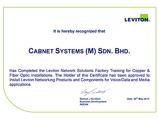 Certificate Leviton Certified Installer
